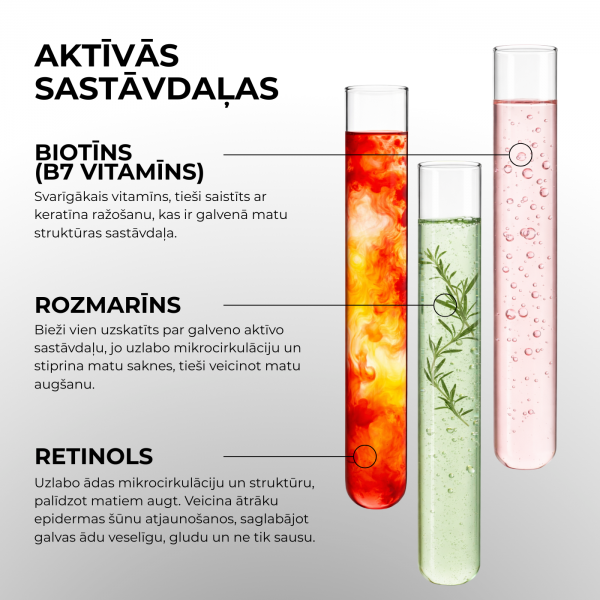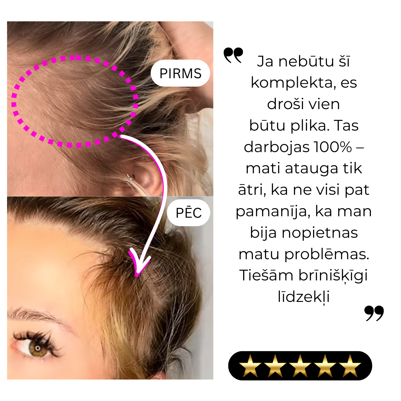 Jau pēc pirmās lietošanas reizes sajūtiet matu augšanas spēku un redzamu apjomu! Satur 11 izcilas, zinātniski pamatotas sastāvdaļas.