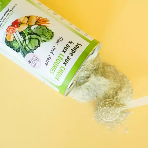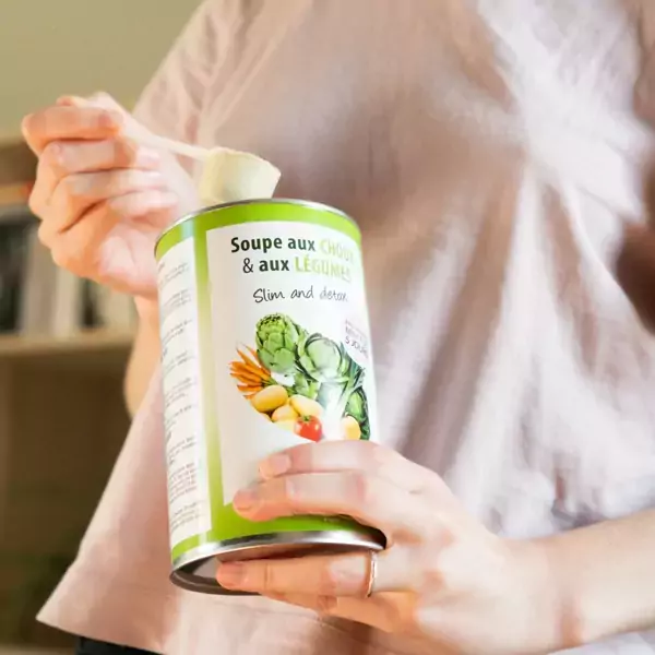 Žāvēti dārzeņi (kartupeļu pārslas, zaļie kāposti (20%), puravi, sīpoli, burkāni, tomāti), sāls, artišoku sulas pulveris (30% sausais artišoku ekstrakts), dabīgs aromāts, ābolu un citronu pektīns, biezinātājs: ksantāna sveķi, garšvielas (ķiploki, pipari, selerijas).