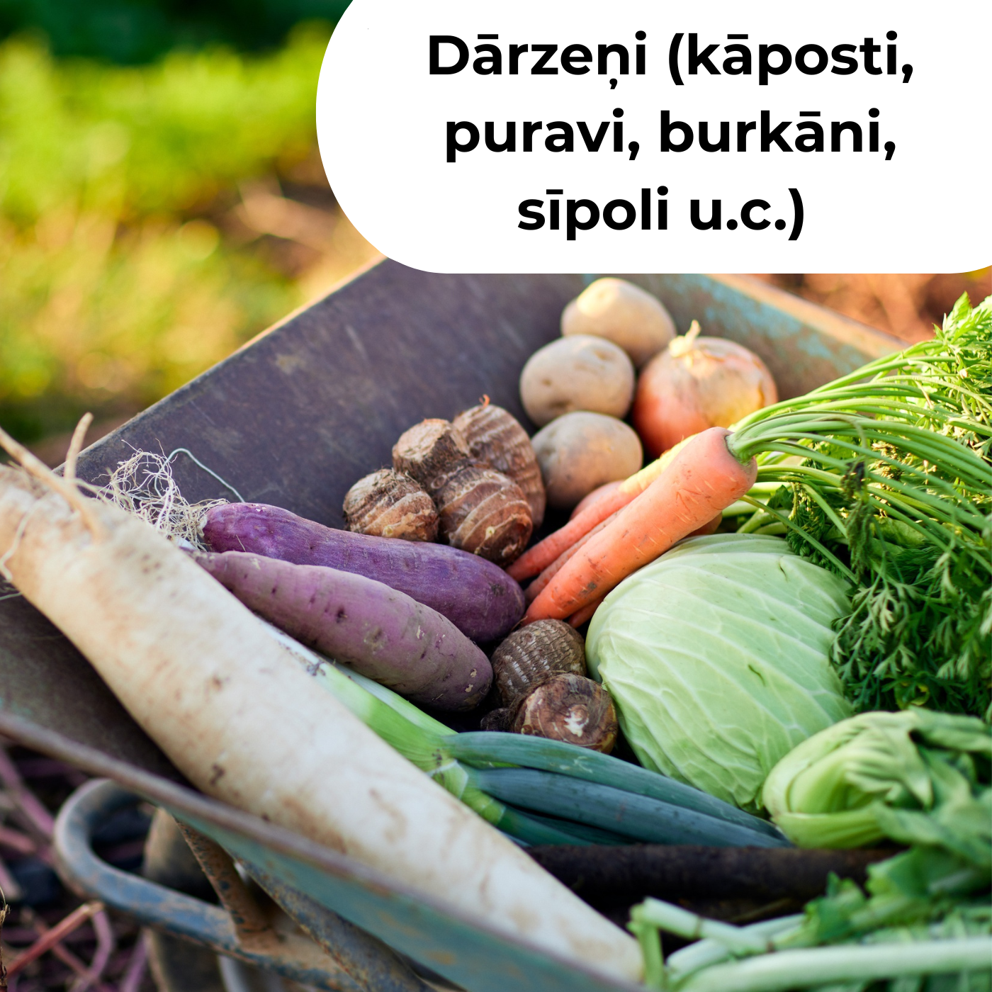 | Dārzeņi (kāposti, puravi, burkāni, sīpoli u.c.) - Daudz šķiedrvielu un maz kaloriju; uzlabo sāta sajūtu, nepievienojot daudz kaloriju un uzlabo gremošanu. | ![]() |