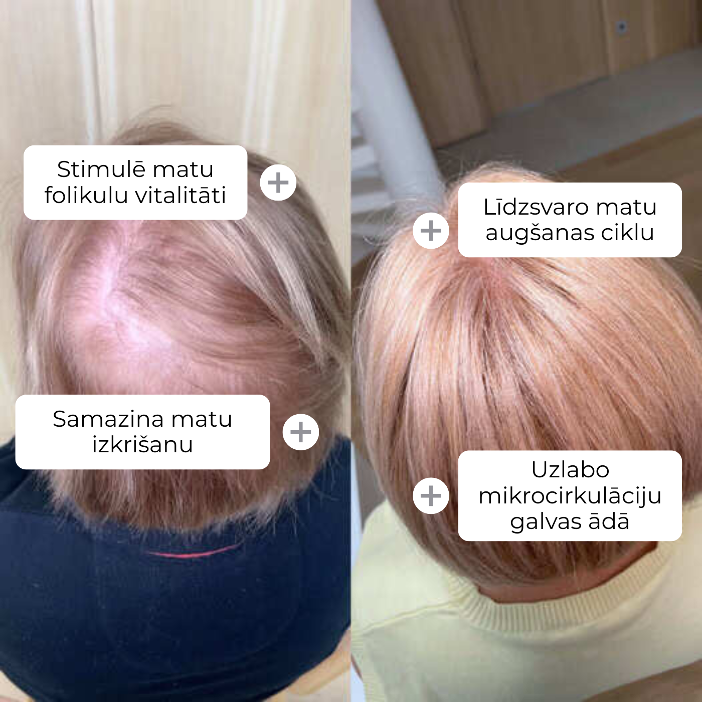 Uzlabo mikrocirkulāciju galvas ādā